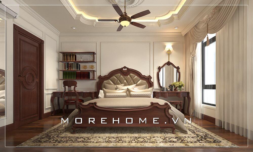 Morehome gợi ý cho bạn mẫu giường ngủ gỗ tự nhiên cao cấp cho nhà biệt thự sang trọng phong cách tân cổ điển